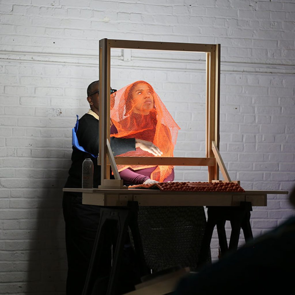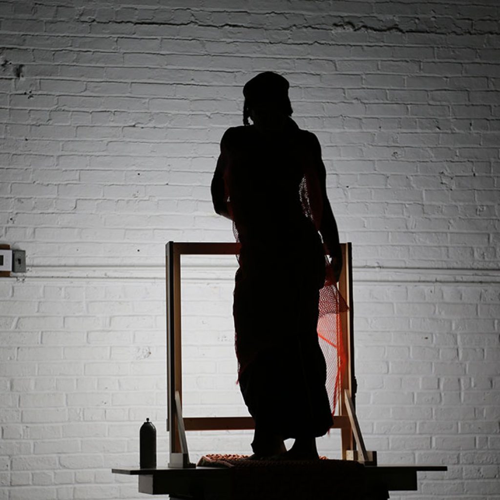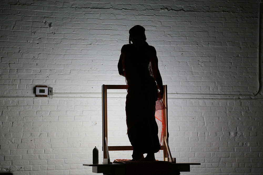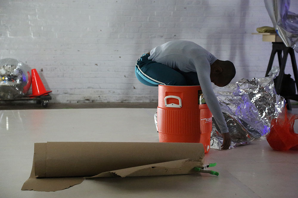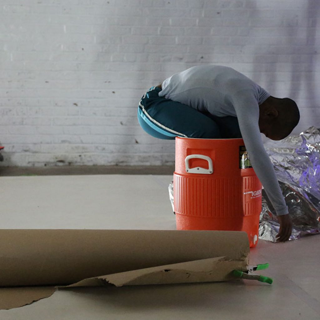 NOTHING: more is an anti-still life, a composition of objects and bodies constantly in flux. In this performance artist Autumn Knight experiments with the porous boundary between parts and whole, object and body, configuration and abstraction. Throughout its duration, three performers move objects of varying size and texture into momentary compositions; while one performer constructs an image, another comes to disrupt, reinterpret and at times conglomerate with their body and/or more objects. The performance itself resists identification, narration and legibility, instead Knight starts from nothing and never veers too far from it. This is a process of making the self, a constant state of renewal that takes our parts to create and reconfigure out of necessity. And there is always more; more to be done, rehearsed and assumed, creating both more and nothing at the same time.